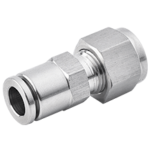 Stainless steel transition fittings are designed to connect soft tubing on one end and metal tubing on other end; one side is stainless steel push to connect fitting configuration, another side is stainless steel compression tube fitting configuration. Stainless steel transition fittings are used for air, pneumatic, food & beverage, chemical, medical & pharmaceutical systems. They are suitable for use with both metal & plastic tubing. They have an 316 stainless steel body, stainless steel collet and FKM (Viton) seal one the push to connect fitting end, and stainless steel nut, back ferrule, front ferrule on compression tube fitting end. Designed for use with plastic tubing, include polyurethane, polyethylene, nylon, Teflon tubing and hard pipe include stainless steel, carbon steel, copper, titanium, aluminum pipe, Accommodate metric tubing O.D ranging from 4 mm to 16 mm and inch (imperial) tubing O.D from 1/8" to 1/2".