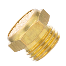 BSLM M10 sintered bronze breather vent pneumatic muffler is made of brass, has sintered bronze filter element and a male M10 x 1 threaded connection to filter air that is entering cylinders or valves. M10 x 1 sintered brass silencer is designed to lower amount of noise created during releasing compressed air to atmosphere. Additionally they protect pneumatic elements from external contamination.