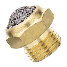 BSLV M12 stainless steel wire screen breather vent with brass base has a M12 x 1.25 male thread to screw into the exhaust port of a directional control valve. The special screen filter is formed by stainless steel wires offering low profile, high mechanical resistance, exceptional corrosion resistance under high pressure. M12 x 1.25 brass breather vent silencer with stainless steel wire screen is used to quiet the sound of the escaping air with minimum flow restriction and protect the system from dirt and debris.