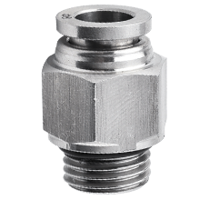 SPC 14-G03 male connector stainless steel push to connect fitting is used to connect a female BSPP, G 3/8 thread to a 14mm O.D tubing in the same direction. 14mm O.D tubing x BSPP, G 3/8 male straight stainless steel push in fitting is made of 316 stainless steel for corrosion resistance, FKM o-ring for chemical-resistance. 14mm O.D tubing x BSPP, G 3/8 male straight adapter stainless steel fitting has an FKM (Viton) o-ring on the thread to provide safe sealing. 14mm O.D tubing x BSPP, G 3/8 male straight connector stainless steel pneumatic fitting is suitable for air, pneumatic, machine tools, food and beverage applications. 14mm O.D tubing x BSPP, G 3/8 male stud straight stainless steel fittings ensure easy and fast connection, and removal of a tube easily. External tightening with a flat wrench.